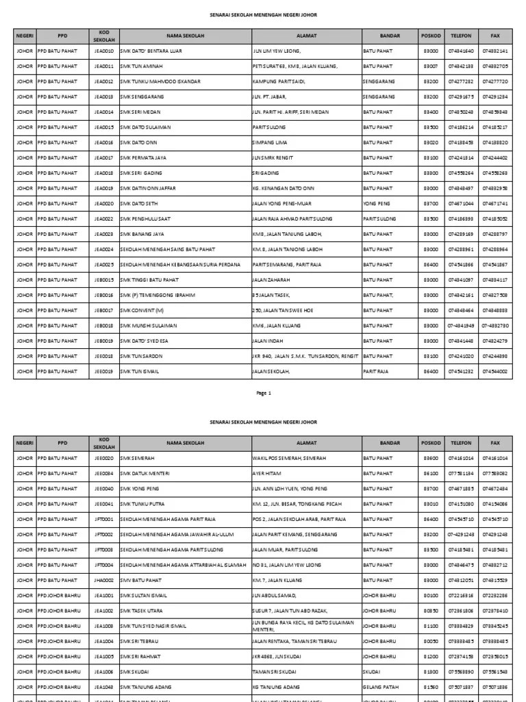 Senarai Sekolah Rendah Di Negeri Johor Darul Takzim